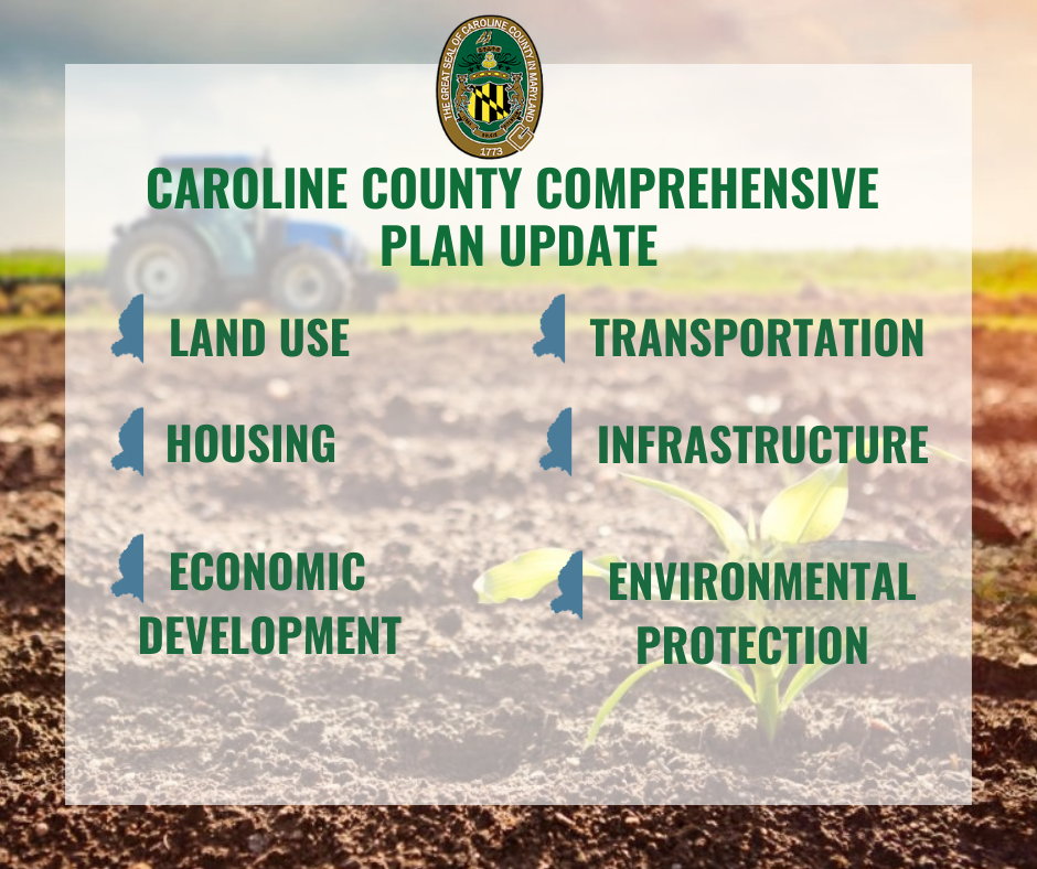 This plan will outline current conditions, future development goals, and an action plan to achieve transportation and mobility, natural resources and environment, housing, infrastructure, economic development, and future growth needs in Caroline County.